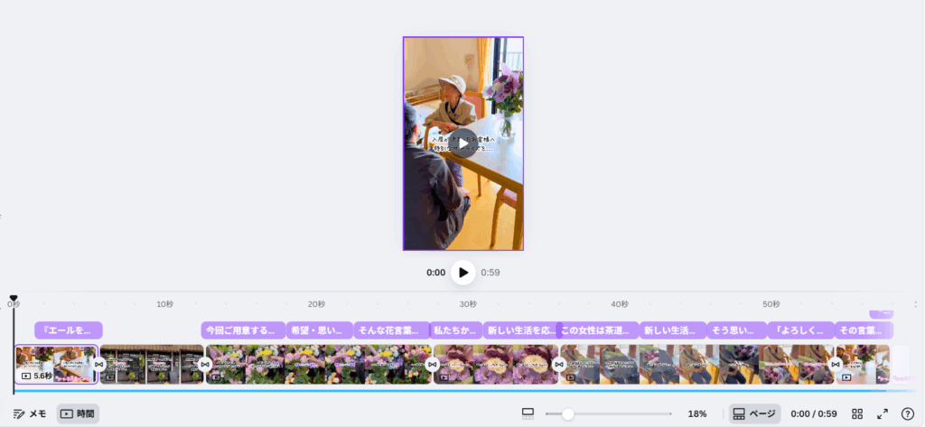 全部で15分48秒の素材が集まりましたが、ショート動画にて投稿するので1分に納めます。